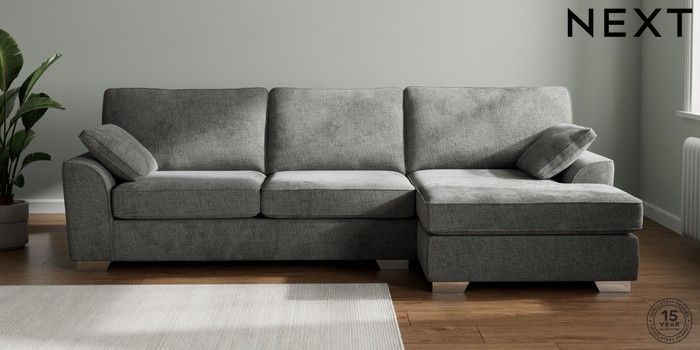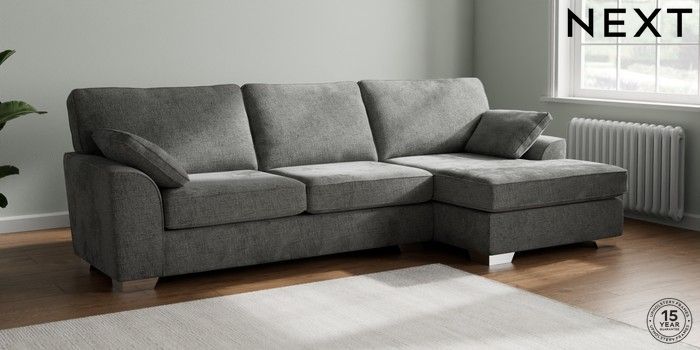 7.2.10 Stamford Large Sofa Chaise - Right Hand Chunky Chenille Dark Grey Large Square Angle - Chrome Metal | Made Click here to use our website with more accessibility support, for example screen readers