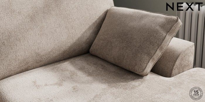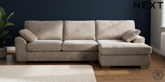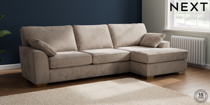 7.2.10 Stamford Large Sofa Chaise - Right Hand Chunky Chenille Light Dove Large Square Angle - Brushed Brass | Made Click here to use our website with more accessibility support, for example screen readers