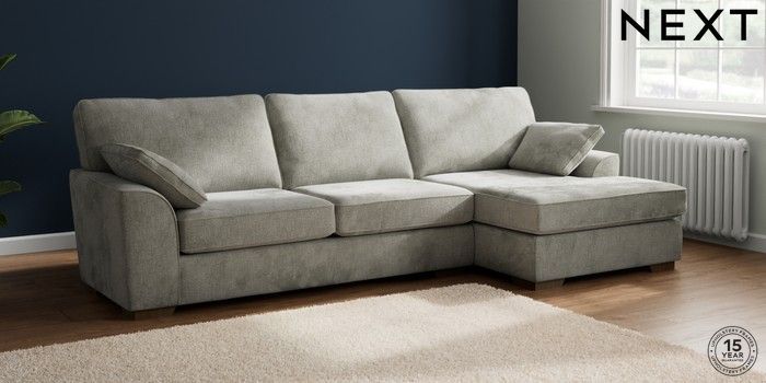 7.2.10 Stamford Large Sofa Chaise - Right Hand Chunky Chenille Light Grey Large Square Angle - Mid | Made Click here to use our website with more accessibility support, for example screen readers