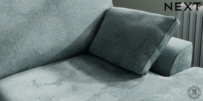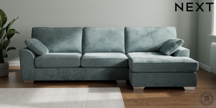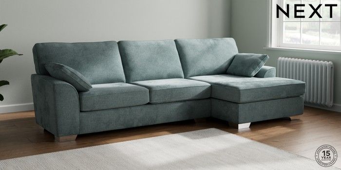 7.2.10 Stamford Large Sofa Chaise - Right Hand Chunky Chenille Light Teal Green Large Square Angle - Chrome Metal | Made Click here to use our website with more accessibility support, for example screen readers