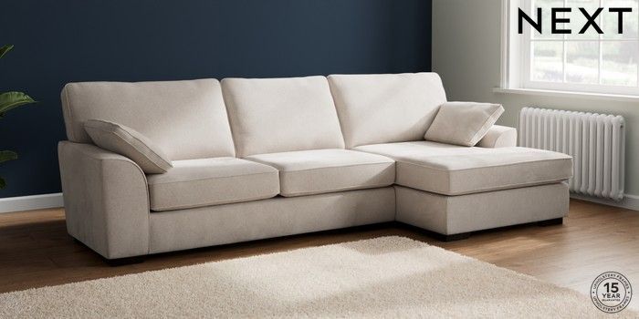7.2.10 Stamford Large Sofa Chaise - Right Hand Chunky Chenille Oyster Large Square Angle - Dark | Made Click here to use our website with more accessibility support, for example screen readers