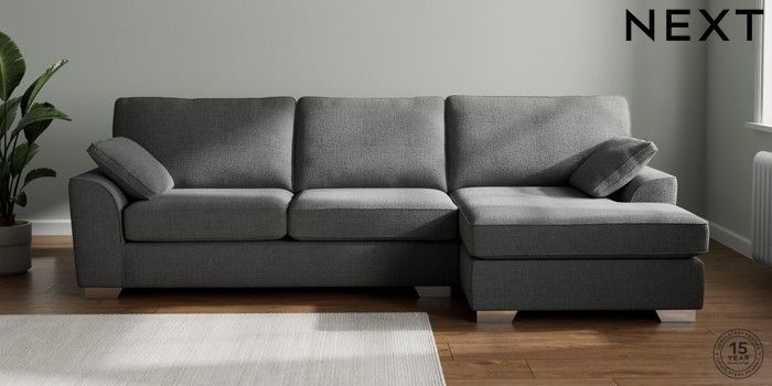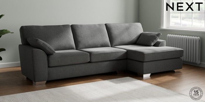 7.2.10 Stamford Large Sofa Chaise - Right Hand Chunky Texture Dark Grey Large Square Angle - Chrome Metal | Made Click here to use our website with more accessibility support, for example screen readers