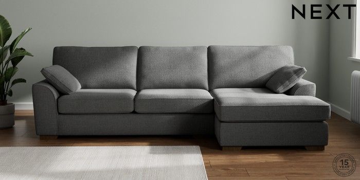 7.2.10 Stamford Large Sofa Chaise - Right Hand Chunky Texture Dark Grey Large Square Angle - Mid | Made Click here to use our website with more accessibility support, for example screen readers