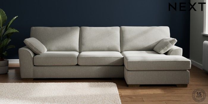 7.2.10 Stamford Large Sofa Chaise - Right Hand Chunky Texture Dove Large Square Angle - Mid | Made Click here to use our website with more accessibility support, for example screen readers