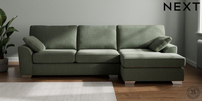 7.2.10 Stamford Large Sofa Chaise - Right Hand Chunky Texture Mid Forest Green Large Square Angle - Chrome Metal | Made Click here to use our website with more accessibility support, for example screen readers