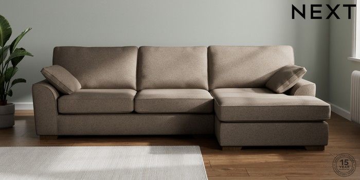 7.2.10 Stamford Large Sofa Chaise - Right Hand Chunky Weave Dark Natural Large Square Angle - Mid | Made Click here to use our website with more accessibility support, for example screen readers