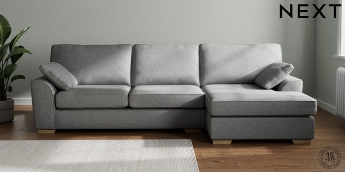 7.2.10 Stamford Large Sofa Chaise - Right Hand Chunky Weave Mid Grey Large Square Angle - Light | Made Click here to use our website with more accessibility support, for example screen readers