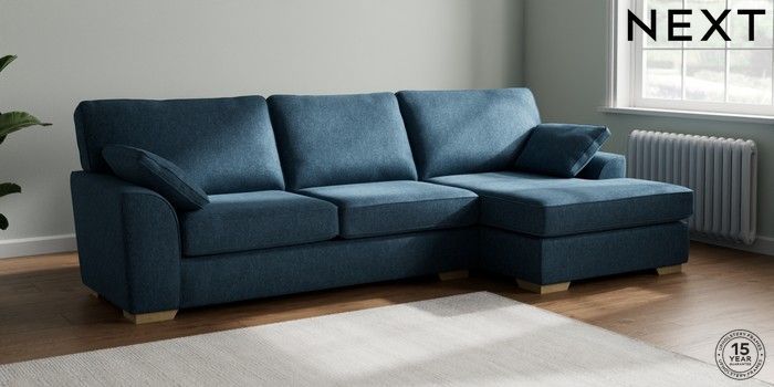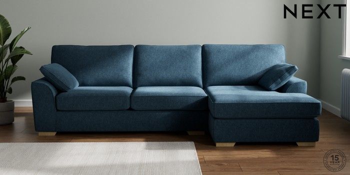 7.2.10 Stamford Large Sofa Chaise - Right Hand Cotswold Chenille Dark Blue Large Square Angle - Light | Made Click here to use our website with more accessibility support, for example screen readers