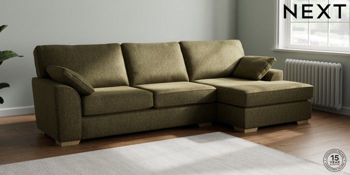 7.2.10 Stamford Large Sofa Chaise - Right Hand Cotswold Chenille Dark Green Large Square Angle - Light | Made Click here to use our website with more accessibility support, for example screen readers