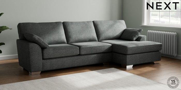 7.2.10 Stamford Large Sofa Chaise - Right Hand Cotswold Chenille Dark Grey Large Square Angle - Chrome Metal | Made Click here to use our website with more accessibility support, for example screen readers