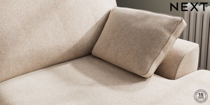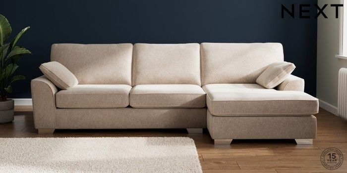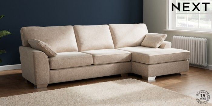 7.2.10 Stamford Large Sofa Chaise - Right Hand Cotswold Chenille Light Natural Large Square Angle - Chrome Metal | Made Click here to use our website with more accessibility support, for example screen readers