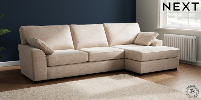 7.2.10 Stamford Large Sofa Chaise - Right Hand Cotswold Chenille Light Natural Large Square Angle - Dark | Made Click here to use our website with more accessibility support, for example screen readers
