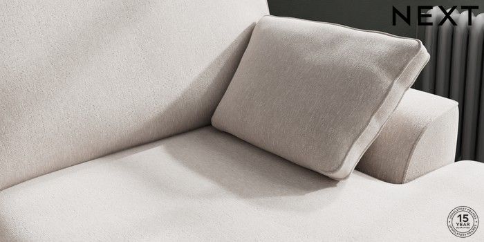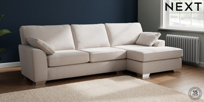 7.2.10 Stamford Large Sofa Chaise - Right Hand Cotswold Chenille Oyster Large Square Angle - Chrome Metal | Made Click here to use our website with more accessibility support, for example screen readers