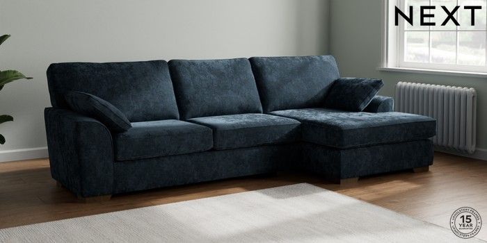 7.2.10 Stamford Large Sofa Chaise - Right Hand Distressed Velour Midnight Blue Large Square Angle - Mid | Made Click here to use our website with more accessibility support, for example screen readers