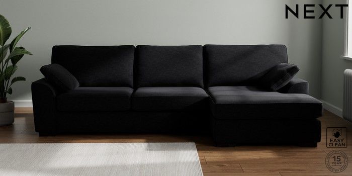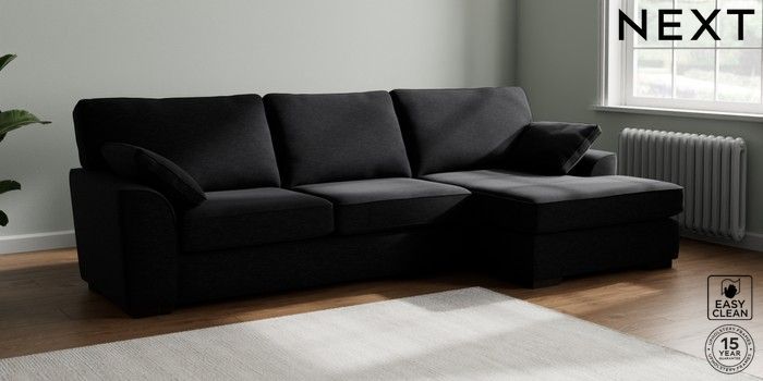 7.2.10 Stamford Large Sofa Chaise - Right Hand Fine Chenille Easy Clean Black Large Square Angle - Dark | Made Click here to use our website with more accessibility support, for example screen readers