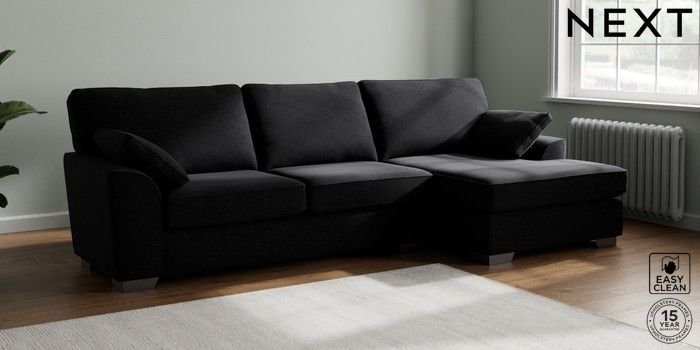 7.2.10 Stamford Large Sofa Chaise - Right Hand Fine Chenille Easy Clean Black Large Square Angle - Gunmetal | Made Click here to use our website with more accessibility support, for example screen readers