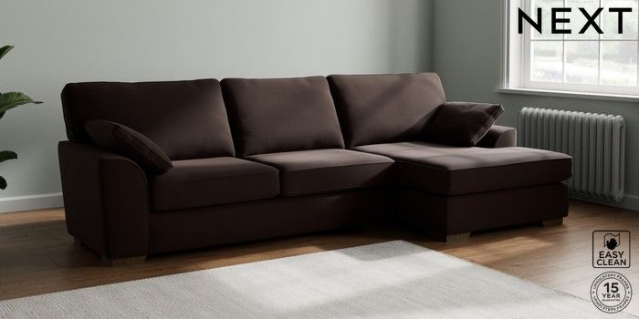 7.2.10 Stamford Large Sofa Chaise - Right Hand Fine Chenille Easy Clean Chocolate Brown Large Square Angle - Mid | Made Click here to use our website with more accessibility support, for example screen readers