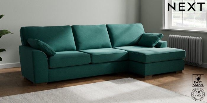 7.2.10 Stamford Large Sofa Chaise - Right Hand Fine Chenille Easy Clean Dark Juniper Green Large Square Angle - Mid | Made Click here to use our website with more accessibility support, for example screen readers