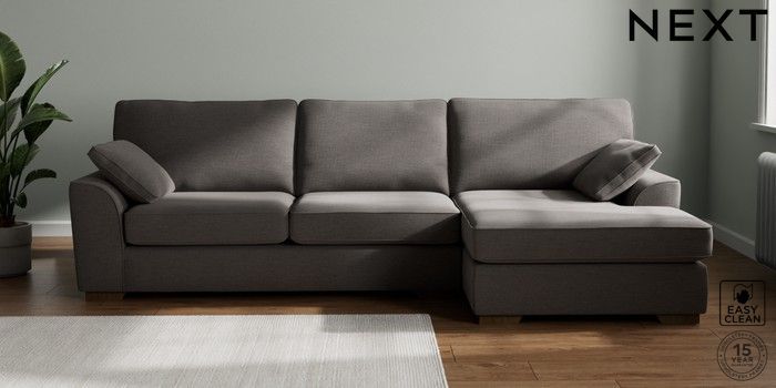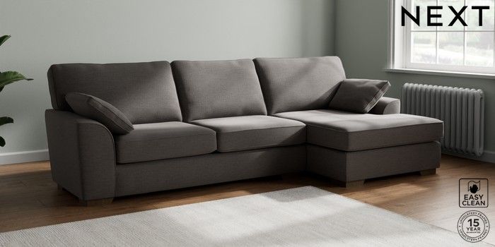 7.2.10 Stamford Large Sofa Chaise - Right Hand Fine Chenille Easy Clean Dark Smoke Grey Large Square Angle - Mid | Made Click here to use our website with more accessibility support, for example screen readers