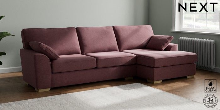 7.2.10 Stamford Large Sofa Chaise - Right Hand Fine Chenille Easy Clean Mid Mulberry Purple Large Square Angle - Light | Made Click here to use our website with more accessibility support, for example screen readers