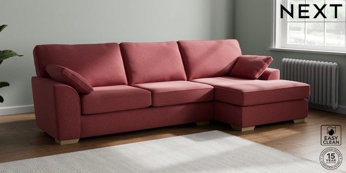 7.2.10 Stamford Large Sofa Chaise - Right Hand Fine Chenille Easy Clean Mid Pink Large Square Angle - Light | Made Click here to use our website with more accessibility support, for example screen readers