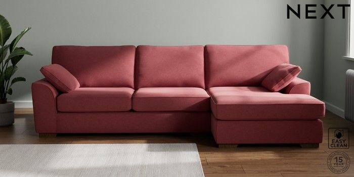 7.2.10 Stamford Large Sofa Chaise - Right Hand Fine Chenille Easy Clean Mid Pink Large Square Angle - Mid | Made Click here to use our website with more accessibility support, for example screen readers