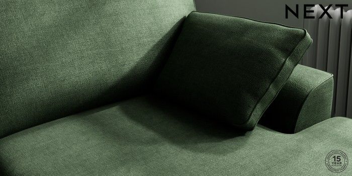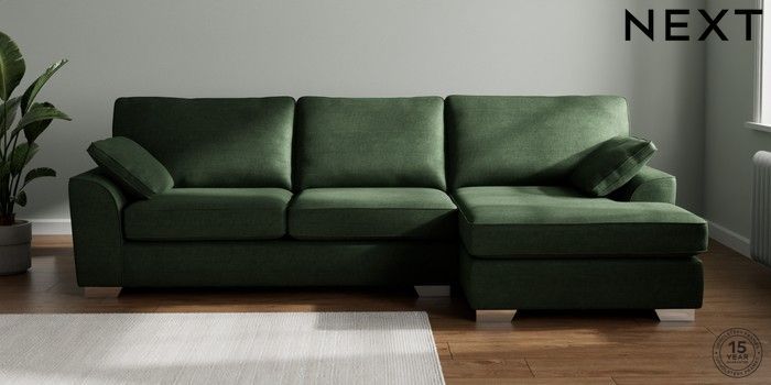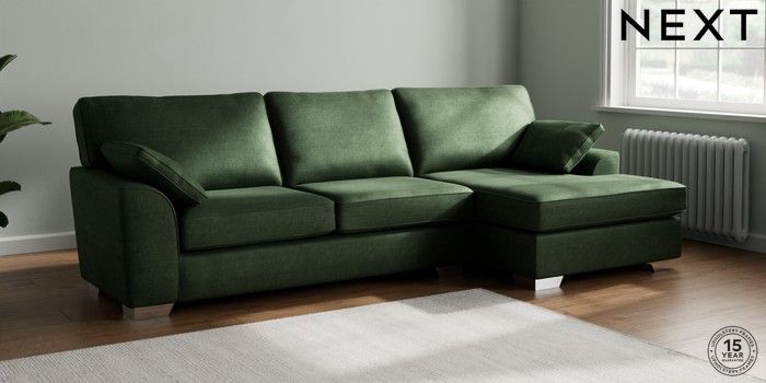 7.2.10 Stamford Large Sofa Chaise - Right Hand Luxe Chenille Dark Green Large Square Angle - Chrome Metal | Made Click here to use our website with more accessibility support, for example screen readers