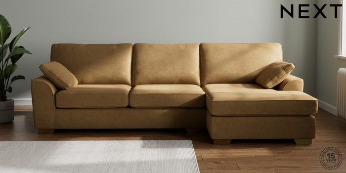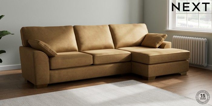 7.2.10 Stamford Large Sofa Chaise - Right Hand Luxe Chenille Honey Yellow Large Square Angle - Brushed Brass | Made Click here to use our website with more accessibility support, for example screen readers