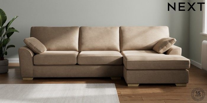 7.2.10 Stamford Large Sofa Chaise - Right Hand Luxe Chenille Mid Camel Beige Large Square Angle - Light | Made Click here to use our website with more accessibility support, for example screen readers