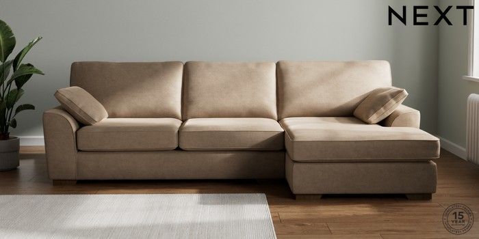 7.2.10 Stamford Large Sofa Chaise - Right Hand Luxe Chenille Mid Camel Beige Large Square Angle - Mid | Made Click here to use our website with more accessibility support, for example screen readers