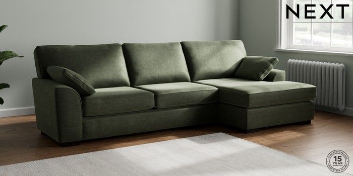 7.2.10 Stamford Large Sofa Chaise - Right Hand Luxe Chenille Mid Green Large Square Angle - Dark | Made Click here to use our website with more accessibility support, for example screen readers