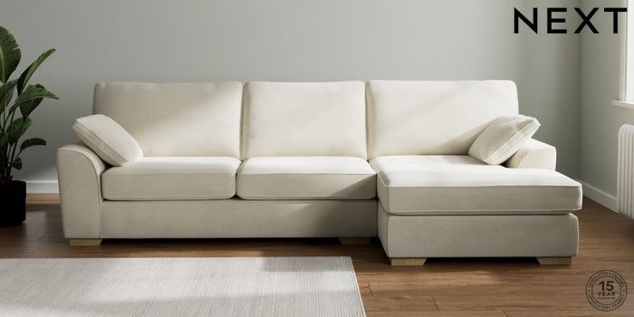 7.2.10 Stamford Large Sofa Chaise - Right Hand Luxe Chenille Oyster Large Square Angle - Light | Made Click here to use our website with more accessibility support, for example screen readers