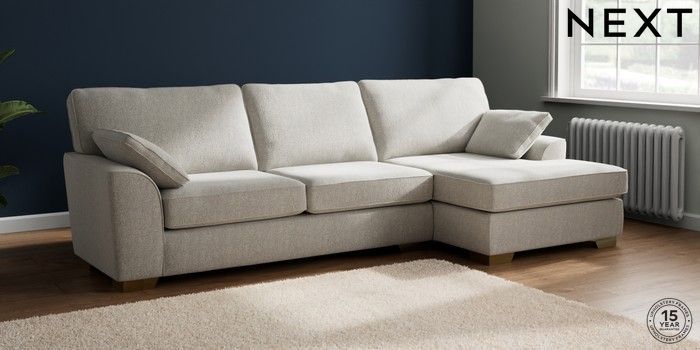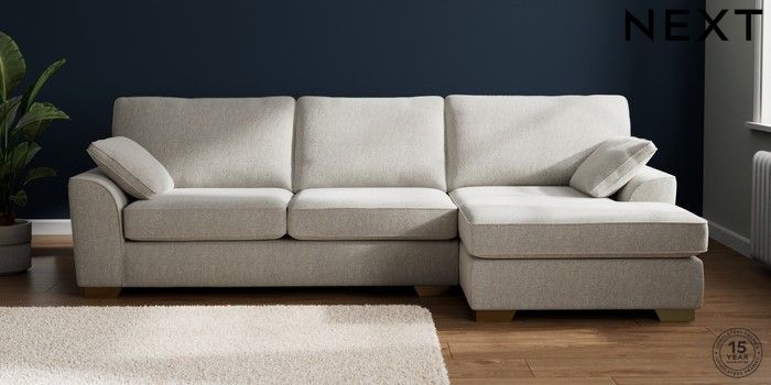 7.2.10 Stamford Large Sofa Chaise - Right Hand Multi Weave Light Blue Large Square Angle - Brushed Brass | Made Click here to use our website with more accessibility support, for example screen readers