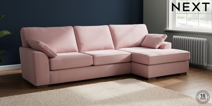 7.2.10 Stamford Large Sofa Chaise - Right Hand Natural Mix Light Rose Pink Large Square Angle - Mid | Made Click here to use our website with more accessibility support, for example screen readers