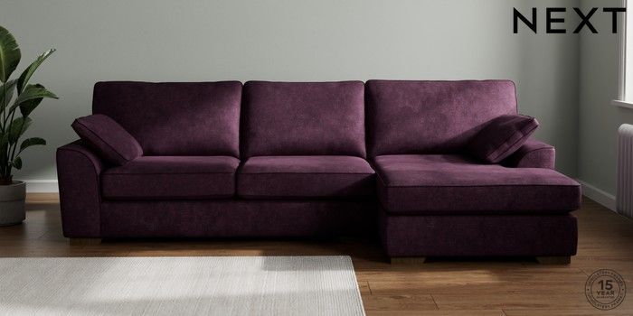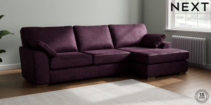 7.2.10 Stamford Large Sofa Chaise - Right Hand Plush Chenille Dark Plum Purple Large Square Angle - Mid | Made Click here to use our website with more accessibility support, for example screen readers