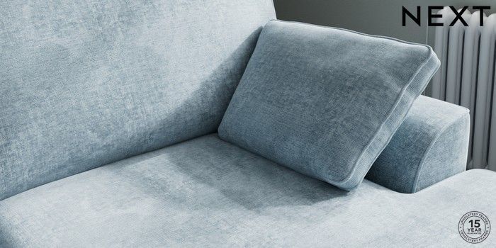 7.2.10 Stamford Large Sofa Chaise - Right Hand Plush Chenille Light Blue Large Square Angle - Light | Made Click here to use our website with more accessibility support, for example screen readers
