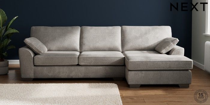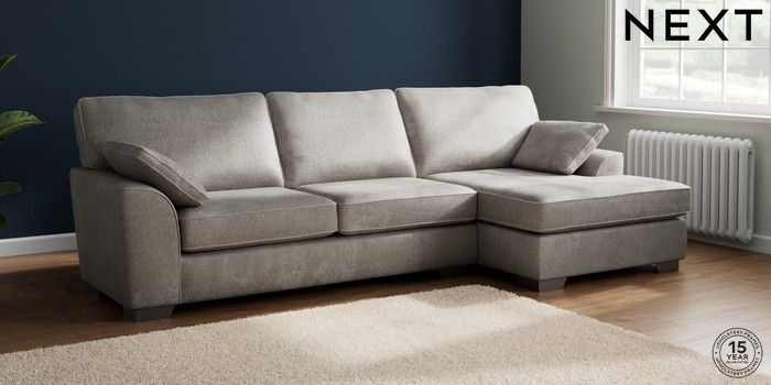 7.2.10 Stamford Large Sofa Chaise - Right Hand Plush Chenille Light Grey Large Square Angle - Gunmetal | Made Click here to use our website with more accessibility support, for example screen readers
