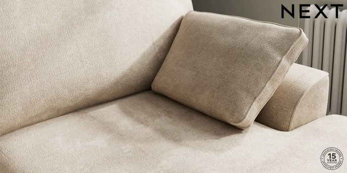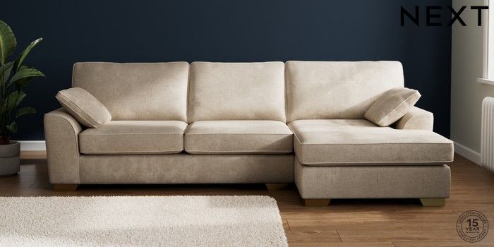 7.2.10 Stamford Large Sofa Chaise - Right Hand Plush Chenille Light Natural Large Square Angle - Brushed Brass | Made Click here to use our website with more accessibility support, for example screen readers