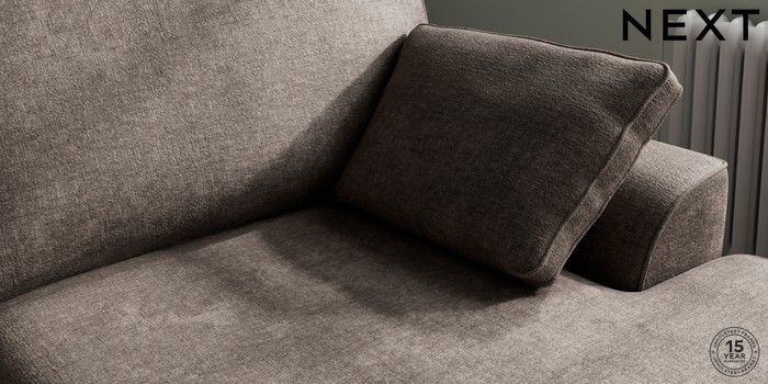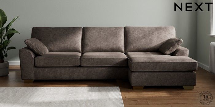 7.2.10 Stamford Large Sofa Chaise - Right Hand Plush Chenille Mink Brown Large Square Angle - Brushed Brass | Made Click here to use our website with more accessibility support, for example screen readers