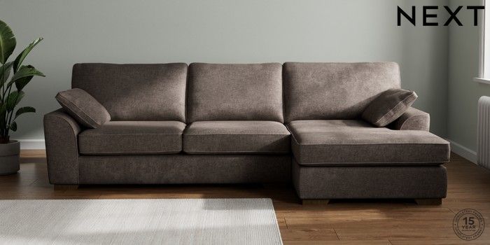 7.2.10 Stamford Large Sofa Chaise - Right Hand Plush Chenille Mink Brown Large Square Angle - Mid | Made Click here to use our website with more accessibility support, for example screen readers