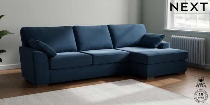 7.2.10 Stamford Large Sofa Chaise - Right Hand Plush Velvet Easy Clean Airforce Blue Large Square Angle - Mid | Made Click here to use our website with more accessibility support, for example screen readers