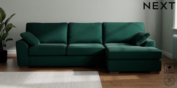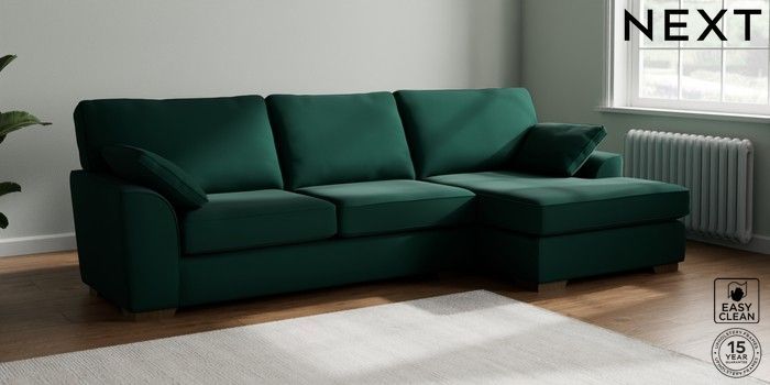 7.2.10 Stamford Large Sofa Chaise - Right Hand Plush Velvet Easy Clean Bottle Green Large Square Angle - Mid | Made Click here to use our website with more accessibility support, for example screen readers