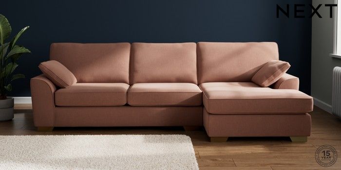 7.2.10 Stamford Large Sofa Chaise - Right Hand Relaxed Linen Look Light Rust Brown Large Square Angle - Brushed Brass | Made Click here to use our website with more accessibility support, for example screen readers