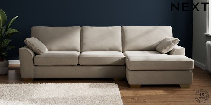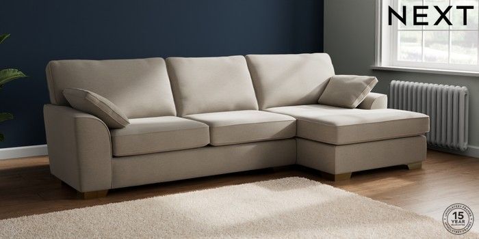 7.2.10 Stamford Large Sofa Chaise - Right Hand Ripple Chenille Light Natural Large Square Angle - Brushed Brass | Made Click here to use our website with more accessibility support, for example screen readers
