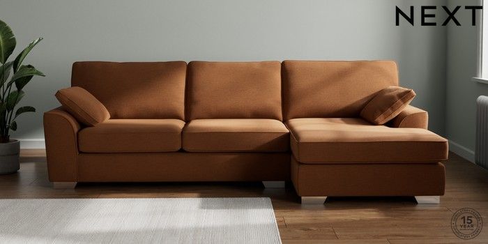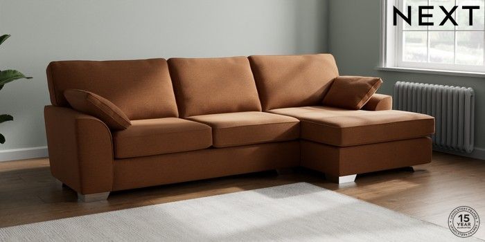 7.2.10 Stamford Large Sofa Chaise - Right Hand Ripple Chenille Mid Rust Brown Large Square Angle - Chrome Metal | Made Click here to use our website with more accessibility support, for example screen readers