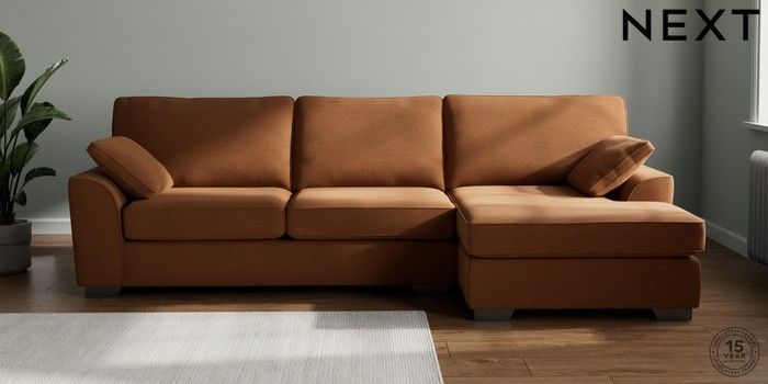 7.2.10 Stamford Large Sofa Chaise - Right Hand Ripple Chenille Mid Rust Brown Large Square Angle - Gunmetal | Made Click here to use our website with more accessibility support, for example screen readers