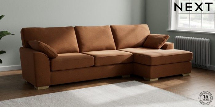 7.2.10 Stamford Large Sofa Chaise - Right Hand Ripple Chenille Mid Rust Brown Large Square Angle - Light | Made Click here to use our website with more accessibility support, for example screen readers