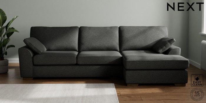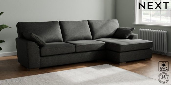 7.2.10 Stamford Large Sofa Chaise - Right Hand Tweedy Blend Easy Clean Charcoal Grey Large Square Angle - Mid | Made Click here to use our website with more accessibility support, for example screen readers