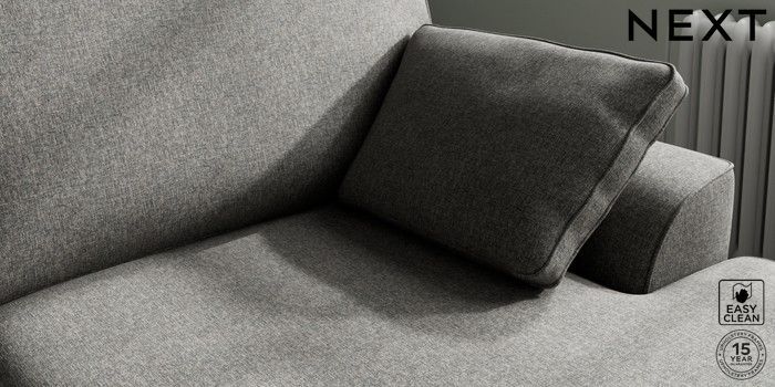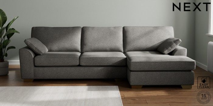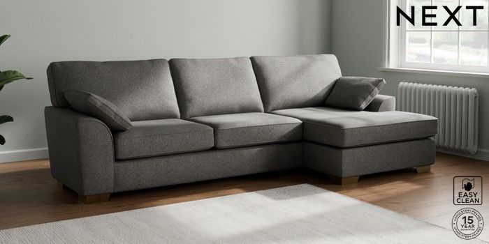 7.2.10 Stamford Large Sofa Chaise - Right Hand Tweedy Blend Easy Clean Dark Grey Large Square Angle - Brushed Brass | Made Click here to use our website with more accessibility support, for example screen readers
