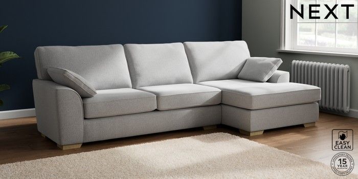 7.2.10 Stamford Large Sofa Chaise - Right Hand Tweedy Blend Easy Clean Light Silver Grey Large Square Angle - Light | Made Click here to use our website with more accessibility support, for example screen readers